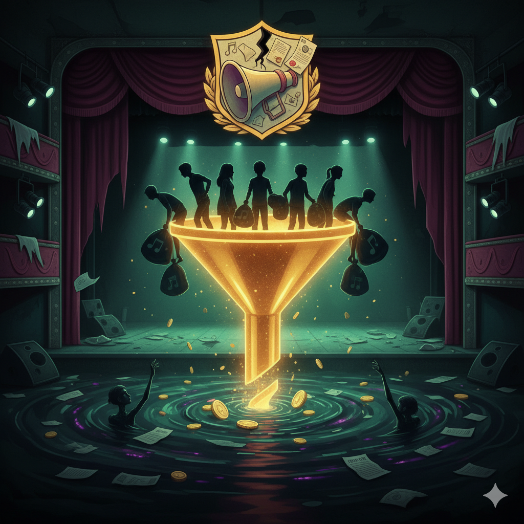 生徒から搾取される「学費」: 夢を追う生徒はこの合同オーディションへの参加資格を得るために高額な学費を支払います。これは学校側にとっては安定した「養分」の確保に他なりません。