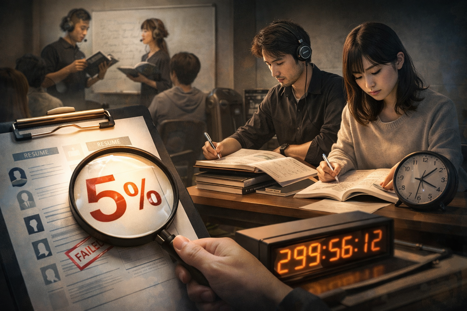 採用率5%という数字は、100人応募したうちの5人しか採用されないという意味です。